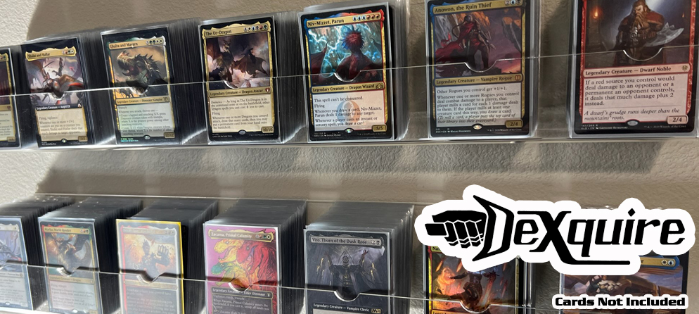 DeXquire is the clear choice for TCG deck storage and display, showing off your best builds with a customizable wall-based layout making the most of your den, gaming area or wherever you play!
